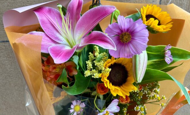 .満開に咲いているユリとコスモスに、ひまわりを合わせて豪華で華やかにお作りいたしました本日も皆様のご来店お待ちしております #プレゼント #flowergift #花束 #お祝い #ブーケ #bouquet#フラワーアレンジメント#卒園式 #卒業式 #送別会#誕生日 #記念日#全国配送 #地方発送#お花のある暮らし #モンソーフルール#モンソーフルールアトレ川崎#パリ生まれのお花屋さん#monceaufleurs#川崎花屋お気軽にお問い合わせください。【モンソーフルール アトレ川崎店】〒210-0007神奈川県川崎市川崎区駅前本町26-1アトレ川崎1FTEL&FAX:044-200-6701営業時間:10:00〜21:00