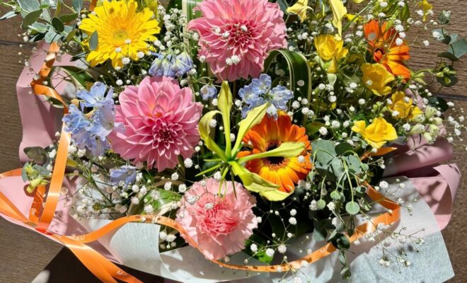 .ダリアとグロリオサがポイントのアレンジメント🍋🟩かすみ草でふわっと可愛らしい雰囲気に💭♡♡ #ダリア #グロリオサ #かすみ草 #プレゼント #flowergift #花束 #お祝い #ブーケ #bouquet#フラワーアレンジメント#卒園式 #卒業式 #送別会#誕生日 #記念日#全国配送 #地方発送#お花のある暮らし #モンソーフルール#モンソーフルールアトレ川崎#パリ生まれのお花屋さん#monceaufleurs#川崎花屋お気軽にお問い合わせください。【モンソーフルール アトレ川崎店】〒210-0007神奈川県川崎市川崎区駅前本町26-1アトレ川崎1FTEL&FAX:044-200-6701営業時間:10:00〜21:00