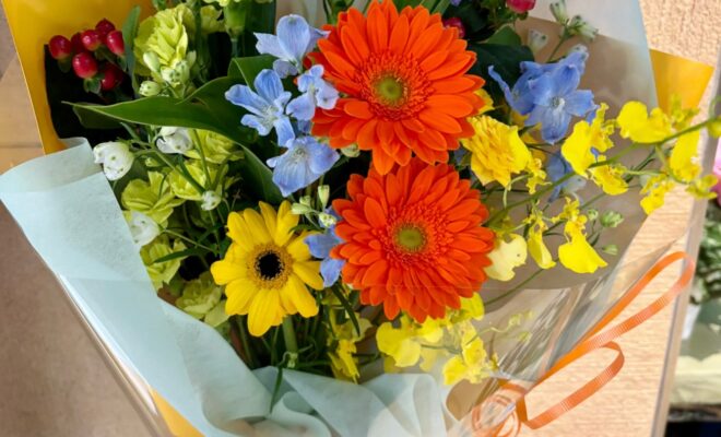 .鮮やかなオレンジが映えるお花束 デルフィニウムを入れてブルーをアクセントにしました🧊 #ガーベラ#デルフィニウム #プレゼント #flowergift #花束 #お祝い #ブーケ #bouquet#フラワーアレンジメント#卒園式 #卒業式 #送別会#誕生日 #記念日#全国配送 #地方発送#お花のある暮らし #モンソーフルール#モンソーフルールアトレ川崎#パリ生まれのお花屋さん#monceaufleurs#川崎花屋お気軽にお問い合わせください。【モンソーフルール アトレ川崎店】〒210-0007神奈川県川崎市川崎区駅前本町26-1アトレ川崎1FTEL&FAX:044-200-6701営業時間:10:00〜21:00
