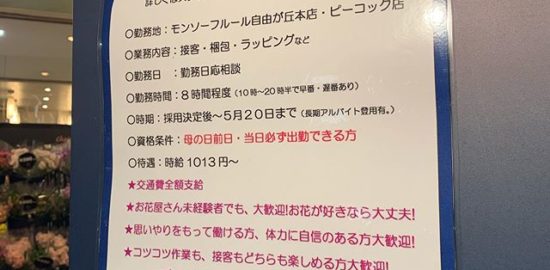 .モンソーフルール自由が丘本店です .〜お知らせ〜母の日に向け、モンソーフルール自由が丘本店・ピーコック店、短期アルバイトさんを大募集しております!.お花が好きな方、お花屋さんのお仕事に興味がある方など、初心者の方も大歓迎ですので、お気軽にお問い合わせください️♪ .お花に囲まれ、一緒に楽しく働きませんか?🥰.皆様のご応募お待ちしております .お店の雰囲気など、是非お気軽にご来店ください♪ . .#monceaufleurs #monceau #モンソーフルール #自由が丘 #花 #flowers #flower #花屋 #flowershop #花のある暮らし #花のある生活 #fleurs #flowerstagram #flowerdesign #花屋アルバイト #花屋アルバイト募集 #花屋アルバイト募集中 #母の日アルバイト #母の日アルバイト募集中 #アルバイト募集 #アルバイト募集中 #お知らせ